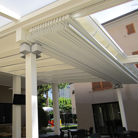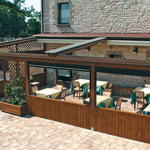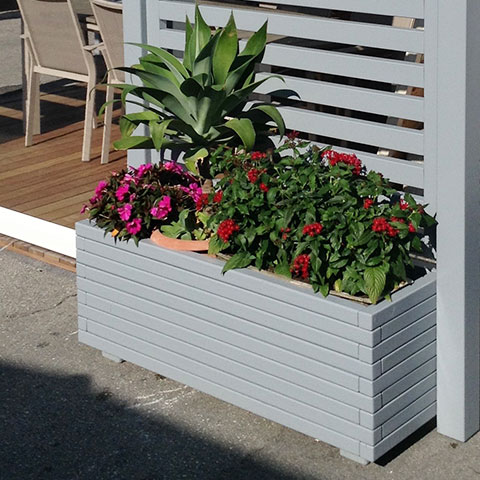 Realizzabile in tantissime forme, altamente personalizzabile con grigliati, fioriere e teli in pvc