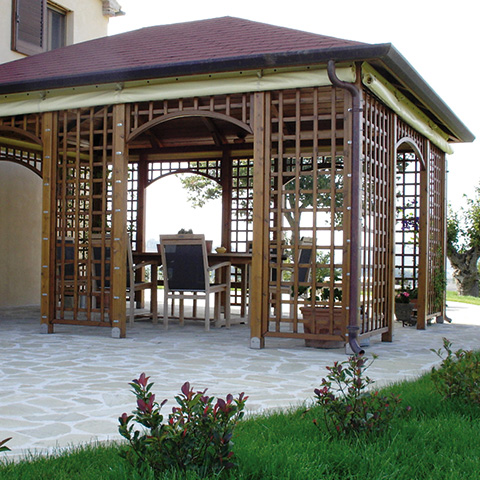 Il gazebo crea un ambiente nel vostro spazio, dove design e relax si completano, un angolo nel vostro giardino dove rilassarsi, assaporando i profumi dell’ambiente.