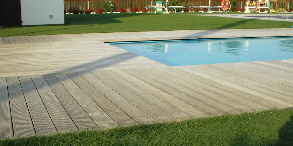 Pedane in legno, pavimentazioni sagomate per bordo piscina in diverse finiture e possibilità